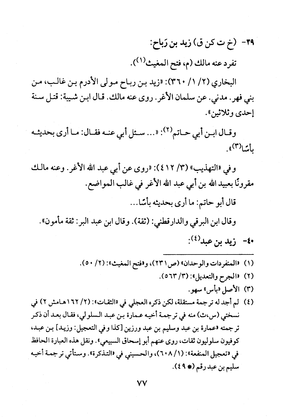 (¬٤) لم أجد له ترجمة مستقلة، لكن ذكره العجلي في «الثقات»: (٢/ ١٦٢ هامش ٢) في نسختي (س، ث) منه في ترجمة أخيه عمارة بن عبد السلولي، فقال بعد أن ذكر ترجمته «عمارة بن عبد وسليم بن عبد ورزين [كذا وفي التعجيل: وزيد] بن عبد، كوفيون سلوليون ثقات، روى عنهم أبو إسحاق السبيعي». ونقل هذه العبارة الحافظ في «تعجيل المنفعة»: (١/ ٦٠٨)، والحسيني في «التذكرة». وستأتي ترجمة أخيه سليم بن عبد رقم (* ٤٩).