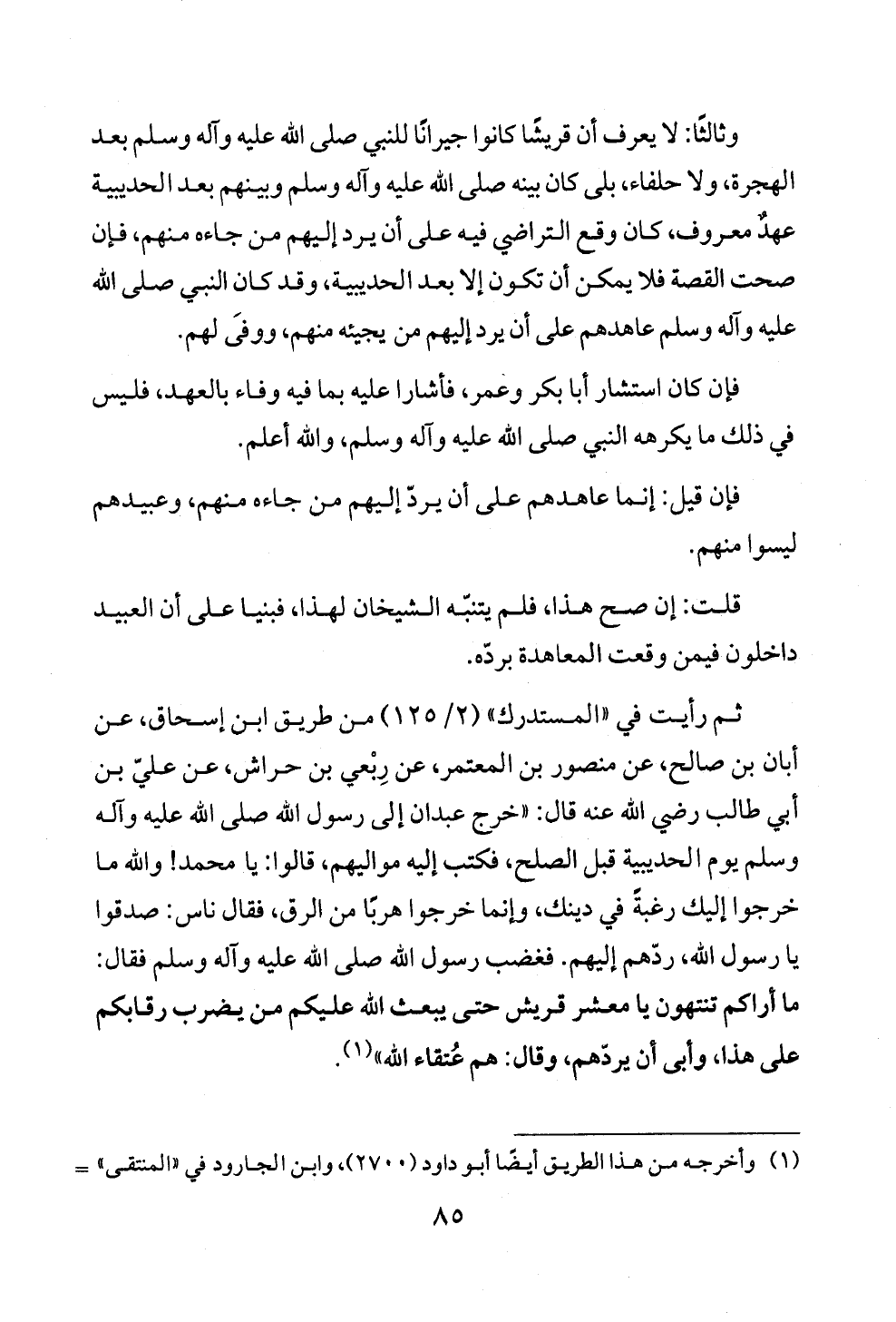 (¬١) وأخرجه من هذا الطريق أيضًا أبو داود (٢٧٠٠)، وابن الجارود في «المنتقى» (١٠٩٣)، والبيهقي في «الكبرى» (٩/ ٣٨٣) من طريق الحاكم، والفاكهي في «أخبار مكة»: (٥/ ٢٣٨) وقال في آخره: قال عبد الله: وخرج آخرون بعد الصلح فردّهم. وفي جميع المصادر «قبل الصلح» وما نقلناه عن الفاكهي يثبّته.