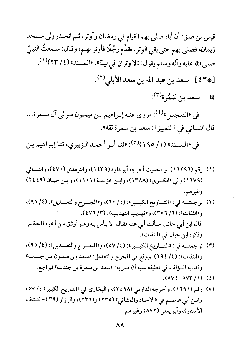 (¬٣) ترجمته في: «التاريخ الكبير»: (٤/ ٥٧)، و «الجرح والتعديل»: (٤/ ٩٥)، و «الثقات»: (٤/ ٢٩٤). ووقع في الجرح والتعديل: «سعد بن ميمون بن جندب» وقد نبه المؤلف في تعليقه عليه أن صوابه: «سعد بن سمرة بن جندب» فيراجع.
