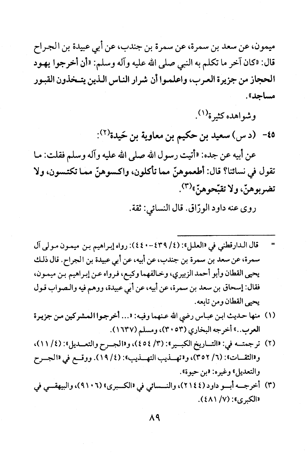 ٤٥ - (د س) سعيد بن حكيم بن معاوية بن حَيدة (¬٢):