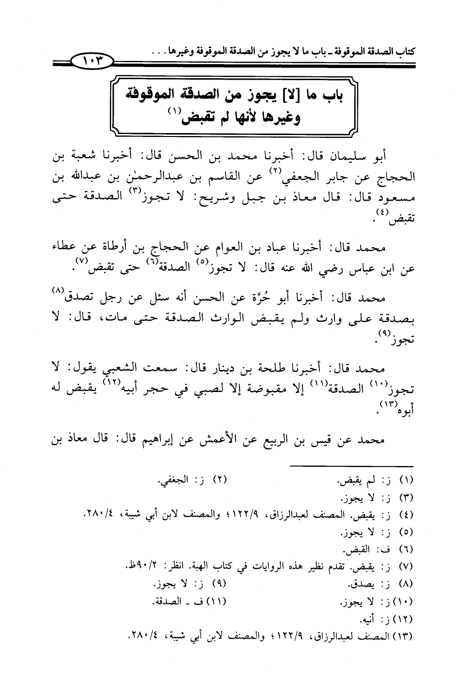 (¬13) المصنِّف لعبد الرزاق، 9/ 122؛ والمصنف لابن أبي شيبة، 4/ 280.