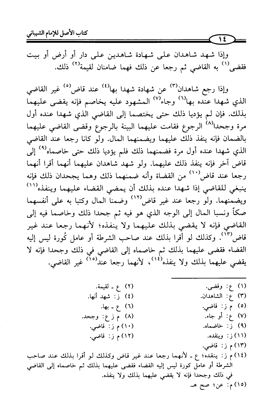 (¬14) م ز: ينقده؛ ع - لأنهما رجعا عند غير قاض وكذلك لو أقرا بذلك عند صاحب الشرطة أو عامل كورة ليس إليه القضاء فقضى عليهما بذلك ثم خاصماه إلى القاضي في ذلك وجحدا فإنه لا يقضي عليهما بذلك ولا ينفذه.