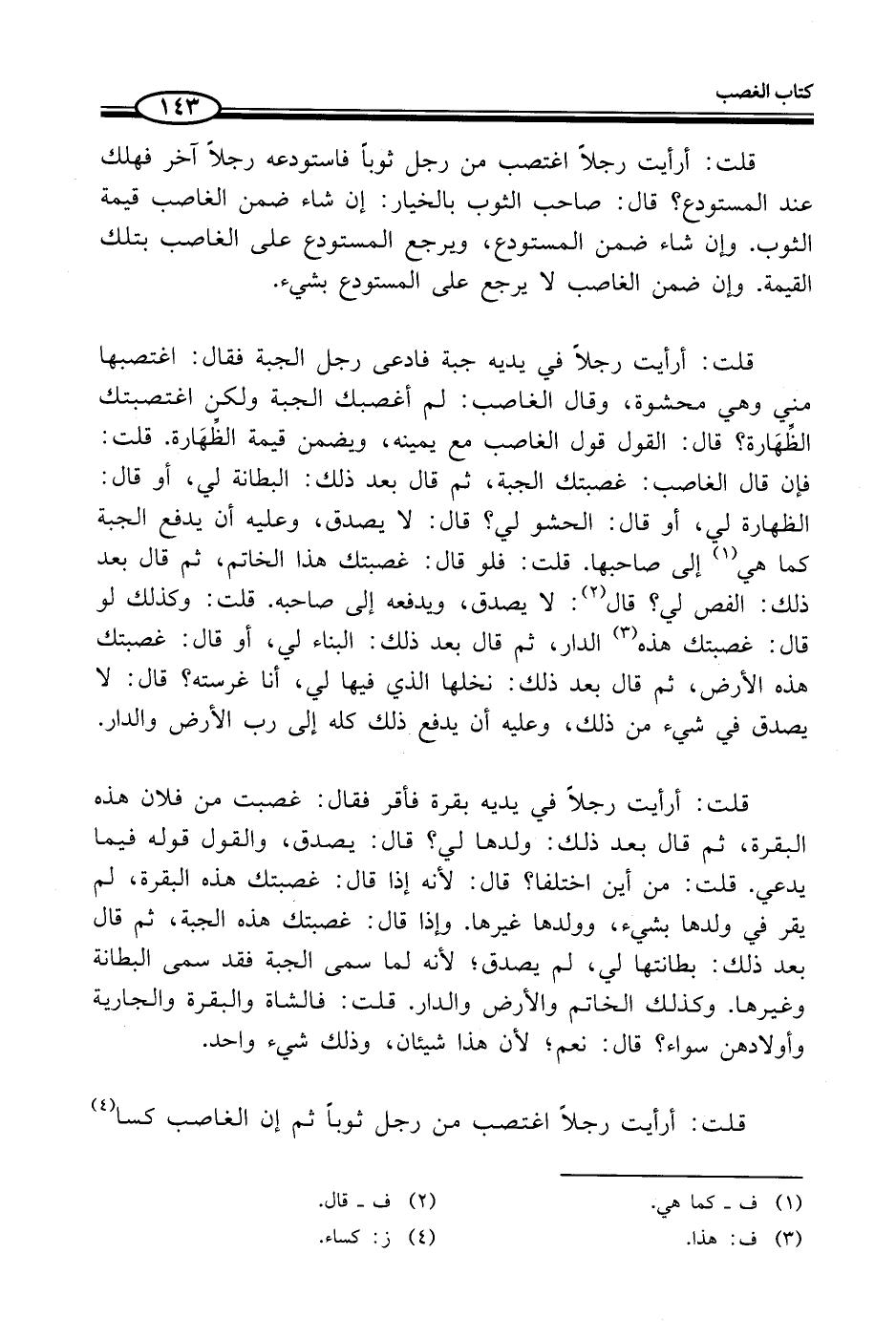قلت: أرأيت رجلاً اغتصب من رجل ثوباً ثم إن الغاصب كسا (¬4)