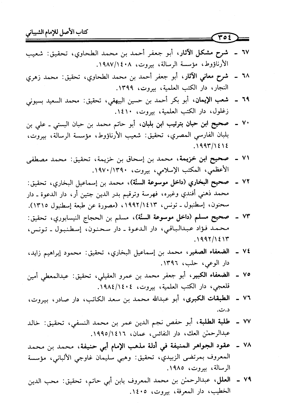 67 - شرح مشكل الآثار، أبو جعفر أحمد بن محمد الطحاوي، تحقيق: شعيب الأرناؤوط، مؤسسة الرسالة، بيروت، 1408/ 1987.