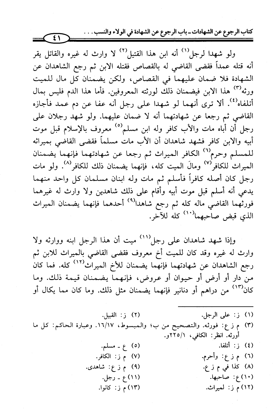 (¬3) م ز ع: فورثه والتصحيح من ب؛ والمبسوط، 17/ 16. وعبارة الحاكم: كل ما أورثه. انظر: الكافي، 1/ 225 و.