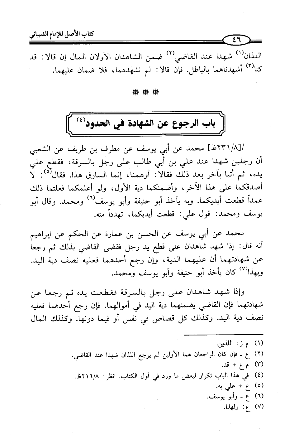 باب الرجوع عن الشهادة في الحدود (¬4)