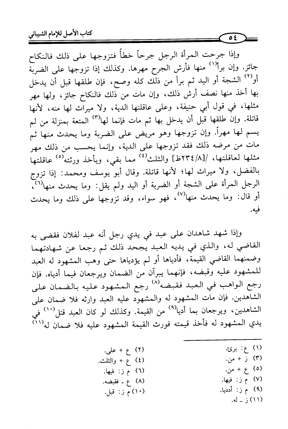 وإذا جرحت المرأة الرجل جرحاً خطة فتزوجها على ذلك فالنكاح جائز. وإن برأ (¬1) منها فأرش الجرح مهرها. وكذلك إذا تزوجها على الضربة أو (¬2) الشجة أو اليد ثم برأ من ذلك كله وصح، فإن طلقها قبل أن يدخل بها أخذ منها نصف أرش ذلك، وإن مات من ذلك فالنكاح جائز، ولها مهر مثلها، في قول أبي حنيفة، وعلى عاقلتها الدية، ولا ميراث لها منه، لأنها قاتلة. وإن طلقها قبل أن يدخل بها ثم مات فإنما لها (¬3) المتعة بمنزلة من لم يسم لها مهراً. وإن تزوجها وهو مريض على الضربة وما يحدث منها ثم مات من مرضه ذلك فقد تزوجها على الدية، وإنما يحسب من ذلك مهر مثلها لعاقلتها، والثلث (¬4) مما بقي، ويأخذ ورثته (¬5) عاقلتها بالفضل، ولا ميراث لهاة لأنها قاتلة. وقال أبو يوسف ومحمد: إذا تزوج الرجل المرأة على الشجة أو الضربة أو اليد ولم يقل: وما يحدث منها (¬6)، أو قال: وما يحدث منها (¬7)، فهو سواء، وقد تزوجها على ذلك وما يحدث فيه.