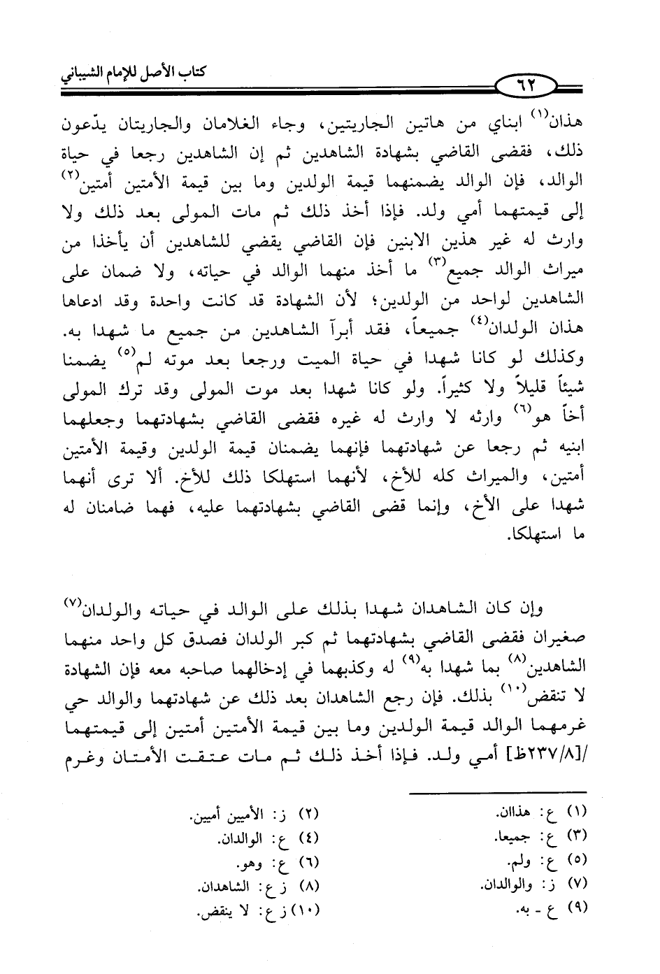 هذان (¬1) ابناي من هاتين الجاريتين، وجاء الغلامان والجاريتان يدّعون ذلك، فقضى القاضي بشهادة الشاهدين ثم إن الشاهدين رجعا في حياة الوالد، فإن الوالد يضمنهما قيمة الولدين وما بين قيمة الأمتين أمتين (¬2) إلى قيمتهما أمي ولد. فإذا أخذ ذلك ثم مات المولى بعد ذلك ولا وارث له غير هذين الابنين فإن القاضي يقضي للشاهدين أن يأخذا من ميراث الوالد جميع (¬3) ما أخذ منهما الوالد في حياته، ولا ضمان على الشاهدين لواحد من الولدين؛ لأن الشهادة قد كانت واحدة وقد ادعاها هذان الولدان (¬4) جميعاً، فقد أبرآ الشاهدين من جميع ما شهدا به. وكذلك لو كانا شهدا في حياة الميت ورجعا بعد موته لم (¬5) يضمنا شيئاً قليلأ ولا كثيراً. ولو كانا شهدا بعد موت المولى وقد ترك المولى أخاً هو (¬6) وارثه لا وارث له غيره فقضى القاضي بشهادتهما وجعلهما ابنيه ثم رجعا عن شهادتهما فإنهما يضمنان قيمة الولدين وقيمة الأمتين أمتين، والميراث كله للأخ، لأنهما استهلكا ذلك للأخ. ألا ترى أنهما شهدا على الأخ، وإنما قضى القاضي بشهادتهما عليه، فهما ضامنان له ما استهلكا.