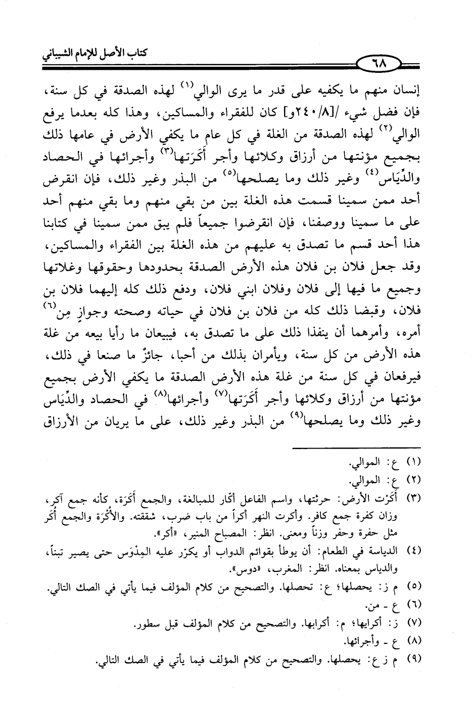 (¬9) م ز ع: يحصلها. والتصحيح من كلام المؤلف فيما يأتي في الصك التالي.