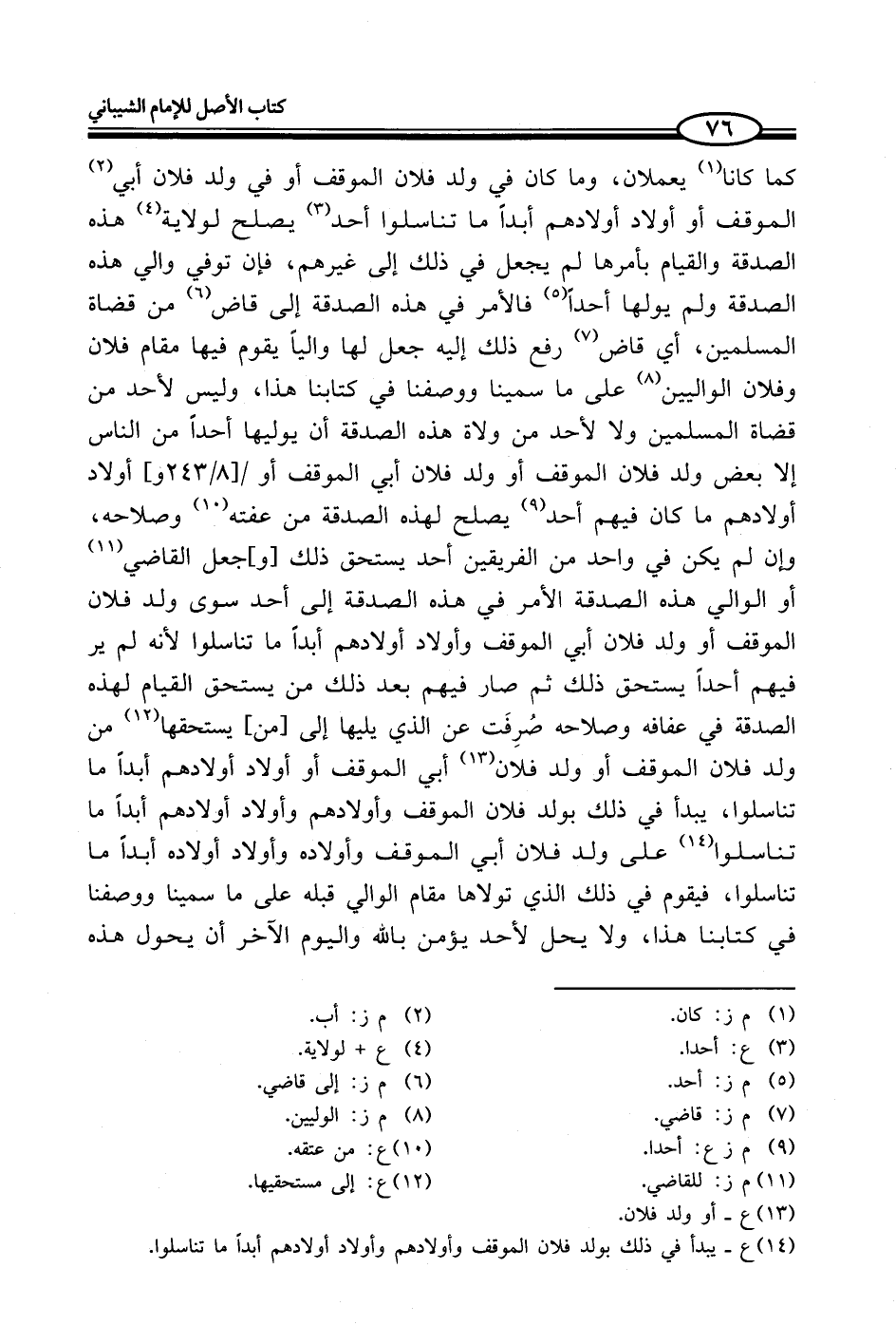 (¬14) يبدأ في ذلك بولد فلان الموقف وأولادهم وأولاد أولادهم أبداً ما تناسلوا.