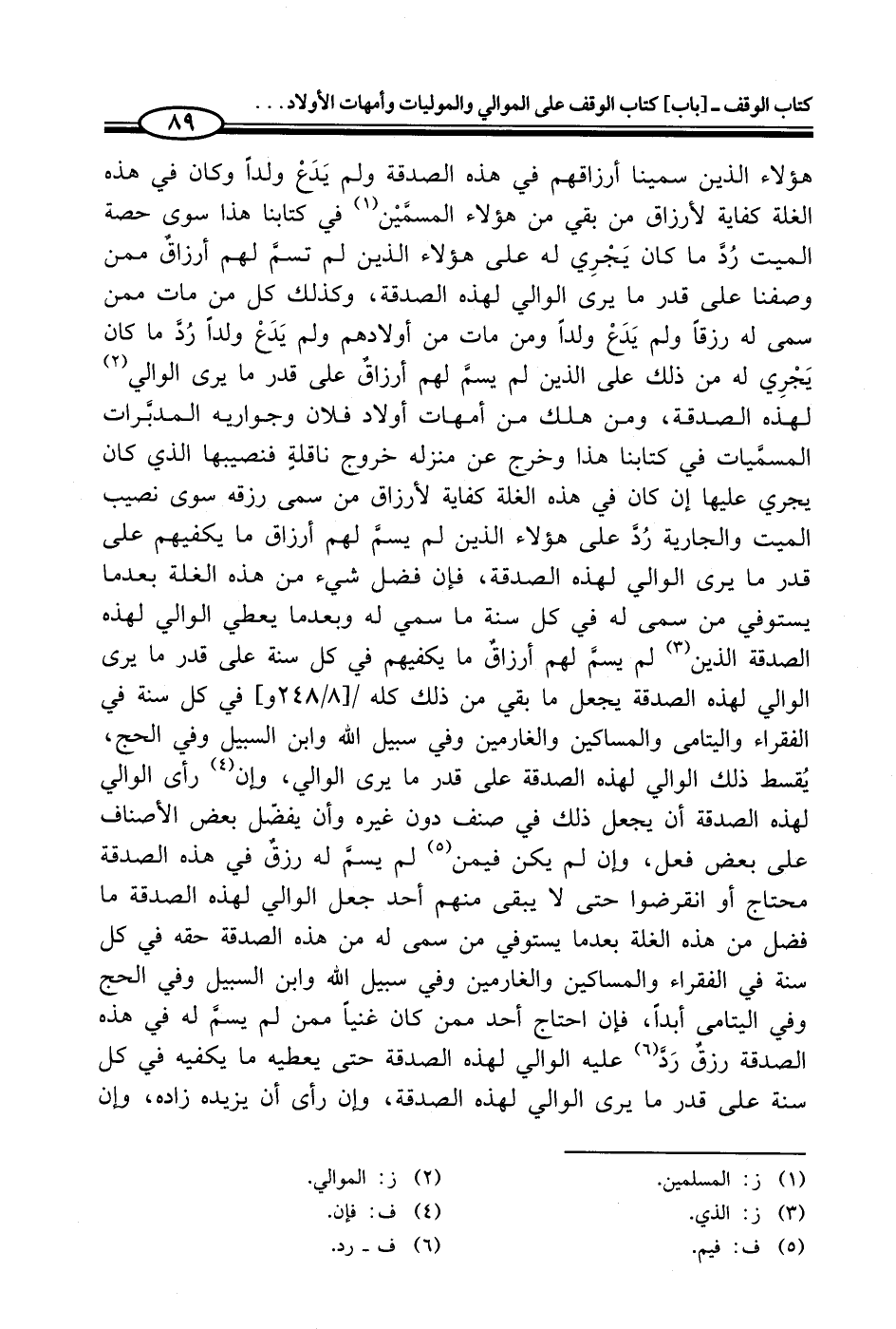 هؤلاء الذين سمينا أرزاقهم في هذه الصدقة ولم يَدَعْ ولداً وكان في هذه الغلة كفاية لأرزاق من بقي من هؤلاء المسمَّيْن (¬1) في كتابنا هذا سوى حصة الميت رُذَ ما كان يَجْرِي له على هؤلاء الذين لم تسمَّ لهم أرزاقٌ ممّن وصفنا على قدر ما يرى الوالي لهذه الصدقة، وكذلك كل من مات ممّن سمى له رزقاً ولم يَدَع ولداً ومن مات من أولادهم ولم يَدَعْ ولداً رُدَّ ما كان يَجْرِي له من ذلك على الذين لم يسمَّ لهم أرزاق على قدر ما يرى الوالي (¬2) لهذه الصدقة، ومن هلك من أمهات أولاد فلادْ وجواريه المدبِّرات المسمَّيات في كتابنا هذا وخرج عن منزله خروج ناقلةٍ فنصيبها الذي كان يجري عليها إن كان في هذه الغلة كفاية لأرزاق من سمى رزقه سوى نصيب الميت والجارية رُذَ على هؤلاء الذين لم يسئَم لهم أرزاق ما يكفيهم على قدر ما يرى الوالي لهذه الصدقة، فإن فضل شيء من هذه الغلة بعدما يستوفي من سمى له في كل سنة ما سمي له وبعدما يعطي الوالي لهذه الصدقة الذين (¬3) لم يسمِّ لهم أرزاق ما يكفيهم في كل سنة على قدر ما يرى الوالي لهذه الصدقة يجعل ما بقي من ذلك كله / [8/ 248 و] في كل سنة في الفقراء واليتامى والمساكين والغارمين وفي سبيل الله وابن السبيل وفي الحجِّ، يُقسط ذلك الوالي لهذه الصدقة على قدر ما يرى الوالي، وإن (¬4) رأى الوالي لهذه الصدقة أن يجعل ذلك في صنف دون غيره وأن يفضل بعض الأصناف على بعض فعل، وإن لم يكن فيمن (¬5) لم يسمِّ له رزق في هذه الصدقة محتاج أو انقرضوا حتى لا يبقى منهم أحد جعل الوالي لهذه الصدقة ما فضل من هذه الغلة بعدما يستوفي من سمى له من هذه الصدقة حقه في كل سنة في الفقراء والمساكين والغارمين وفي سبيل الله وابن السبيل وفي الحجِّ وفي اليتامى أبداً، فإن احتاج أحد ممّن كان غنياً ممّن لم يسمِّ له في هذه الصدقة رزقٌ رَذَ (¬6) عليه الوالي لهذه الصدقة حتى يعطيه ما يكفيه في كل سنة على قدر ما يرى الوالي لهذه الصدقة، وإن رأى أن يزيده زاده، وإن