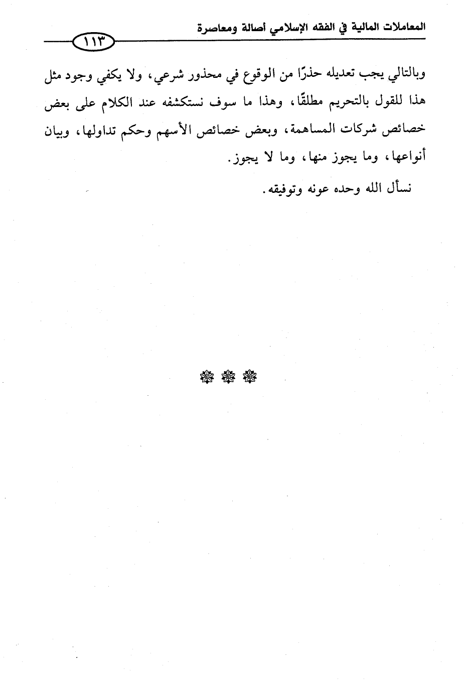 وبالتالي يجب تعديله حذرا من الوقوع في محذور شرعي، ولا يكفي وجود مثل هذا للقول بالتحريم مطلقا، وهذا ما سوف نستكشفه عند الكلام على بعض خصائص شركات المساهمة، وبعض خصائص الأسهم وحكم تداولها، وبيان أنواعها، وما يجوز منها، وما لا يجوز.