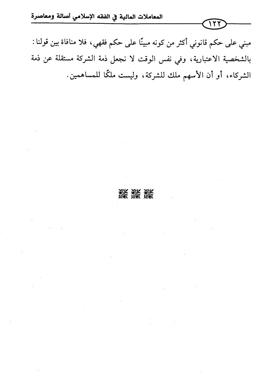 مبني على حكم قانوني أكثر من كونه مبينًا على حكم فقهي، فلا منافاة بين قولنا: بالشخصية الاعتبارية، وفي نفس الوقت لا نجعل ذمة الشركة مستقلة عن ذمة الشركاء، أو أن الأسهم ملك للشركة، وليست ملكاً للمساهمين.