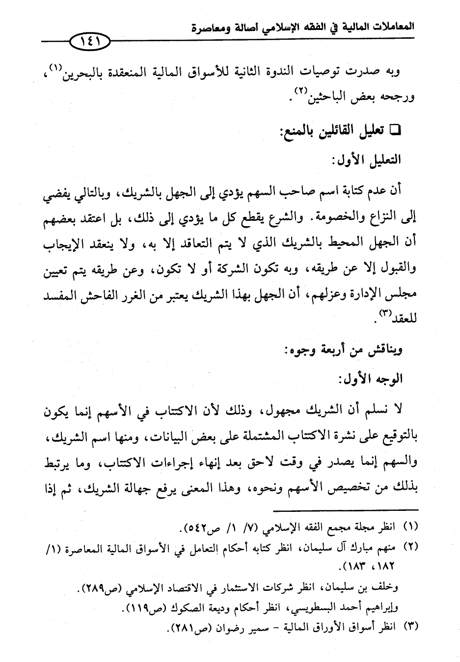 (¬٢) منهم مبارك آل سليمان، انظر كتابه أحكام التعامل في الأسواق المالية المعاصرة (١/ ١٨٢، ١٨٣).