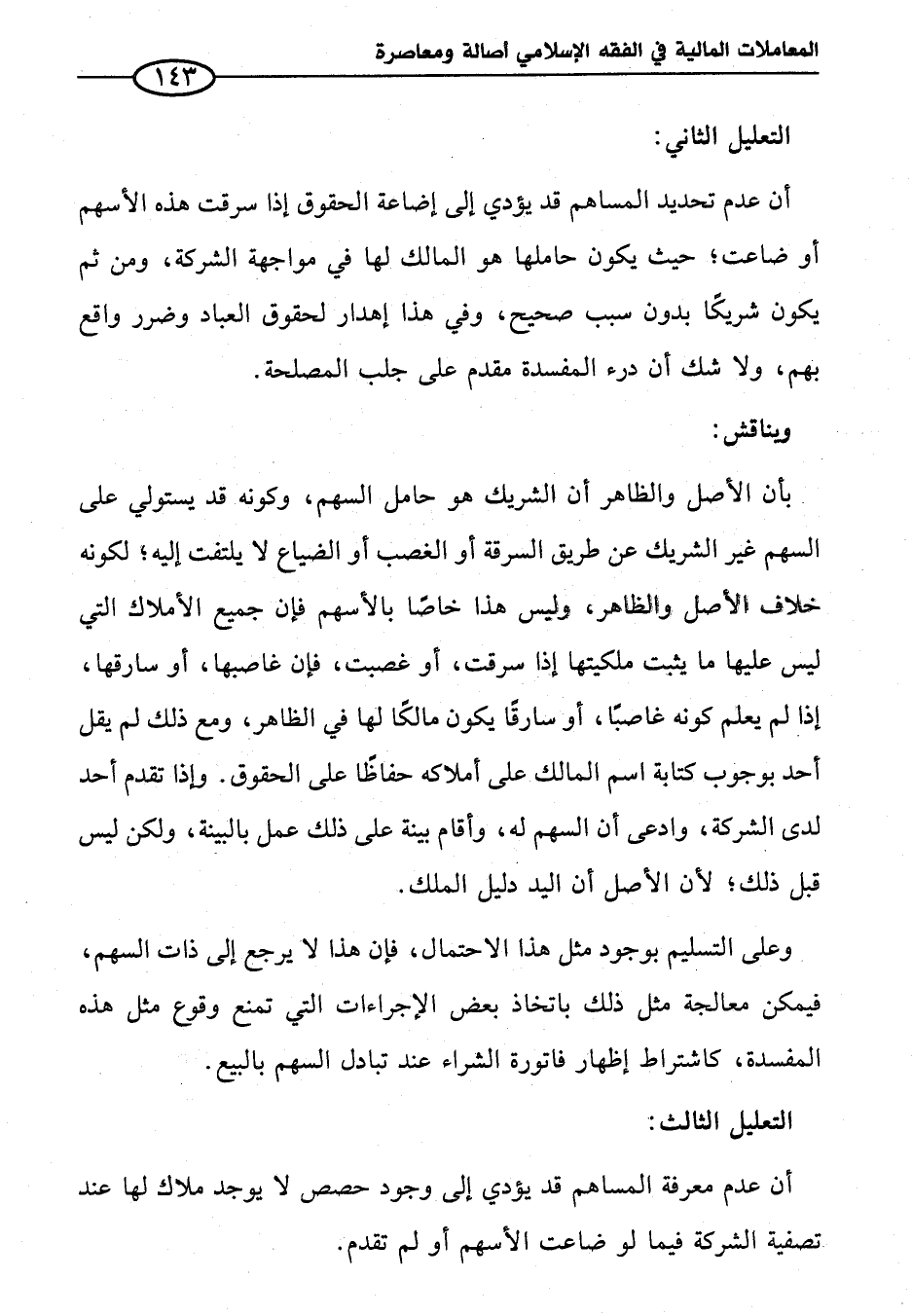 وعلى التسليم بوجود مثل هذا الاحتمال، فإن هذا لا يرجع إلى ذات السهم، فيمكن معالجة مثل ذلك باتخاذ بعض الإجراءات التي تمنع وقوع مثل هذه المفسدة، كاشتراط إظهار فاتورة الشراء عند تبادل السهم بالبيع.