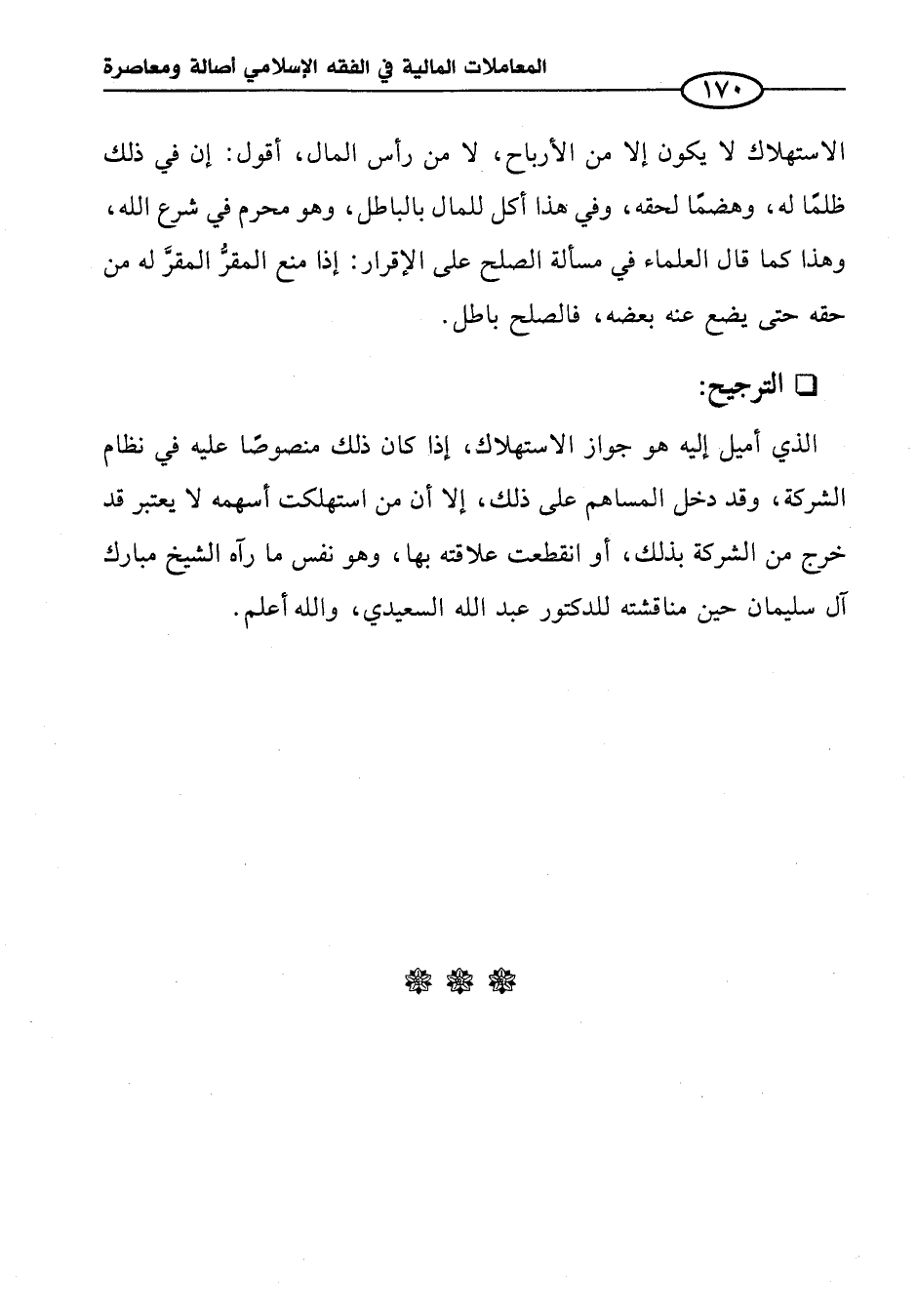 الذي أميل إليه هو جواز الاستهلاك، إذا كان ذلك منصوصًا عليه في نظام الشركة، وقد دخل المساهم على ذلك، إلا أن من استهلكت أسهمه لا يعتبر قد خرج من الشركة بذلك، أو انقطعت علاقته بها، وهو نفس ما رآه الشيخ مبارك آل سليمان حين مناقشته للدكتور عبد الله السعيدي، والله أعلم.