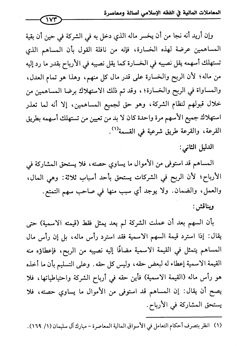 (¬١) انظر بتصرف أحكام التعامل في الأسواق المالية المعاصرة - مبارك آل سليمان (١/ ١٦٩).