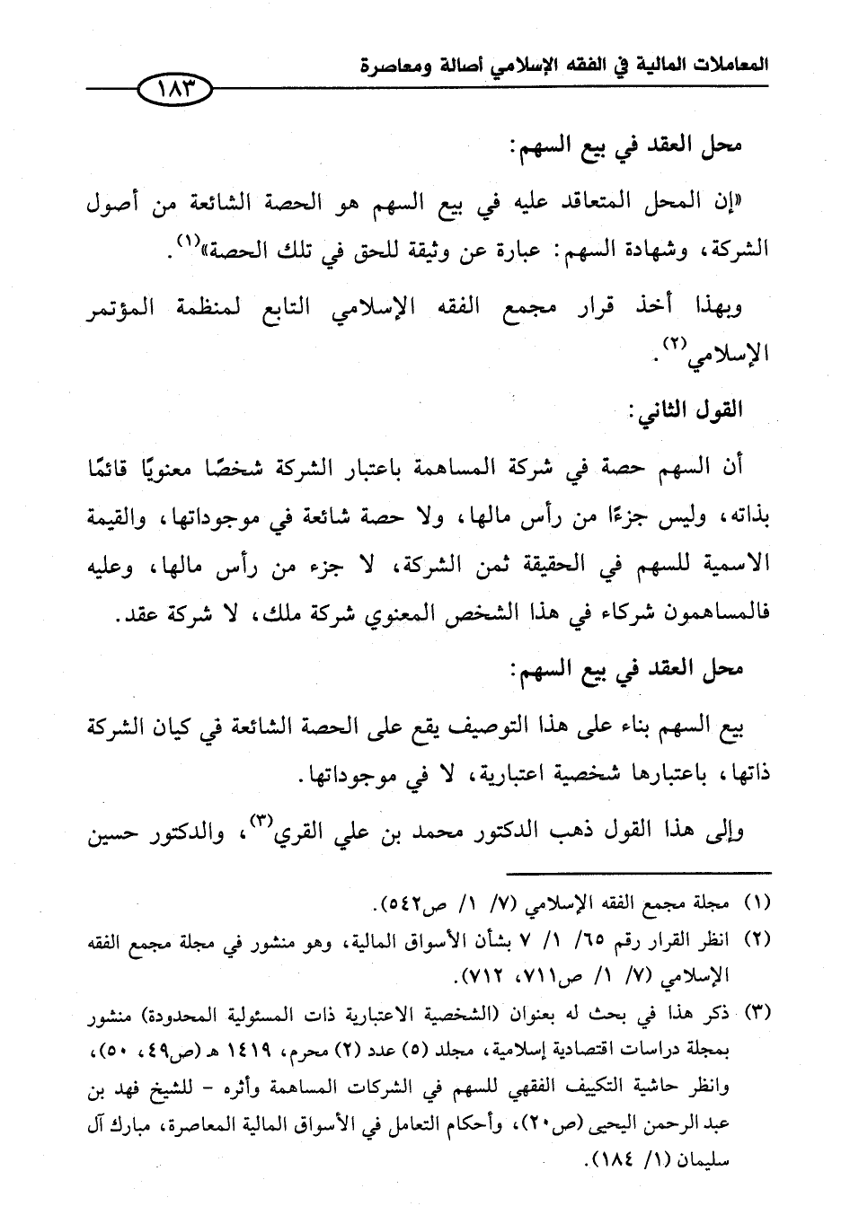 (¬٢) انظر القرار رقم ٦٥/ ١/ ٧ بشأن الأسواق المالية، وهو منشور في مجلة مجمع الفقه الإِسلامي (٧/ ١/ ص ٧١١، ٧١٢).