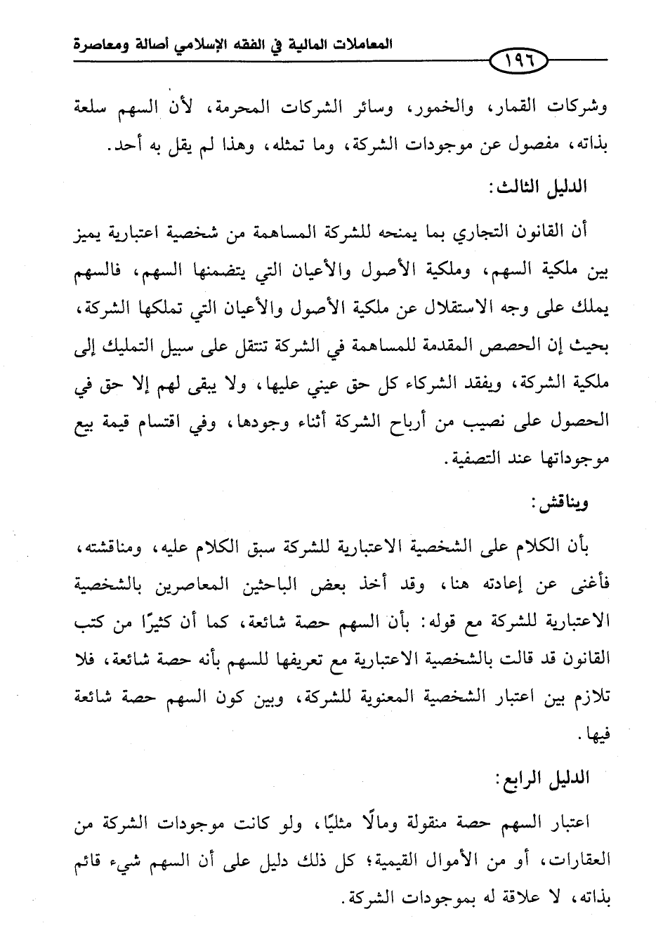 بأن الكلام على الشخصية الاعتبارية للشركة سبق الكلام عليه، ومناقشته، فأغنى عن إعادته هنا، وقد أخذ بعض الباحثين المعاصرين بالشخصية الاعتبارية للشركة مع قوله: بأن السهم حصة شائعة، كما أن كثيرًا من كتب القانون قد قالت بالشخصية الاعتبارية مع تعريفها للسهم بأنه حصة شائعة، فلا تلازم بين اعتبار الشخصية المعنوية للشركة، وبين كون السهم حصة شائعة فيها.