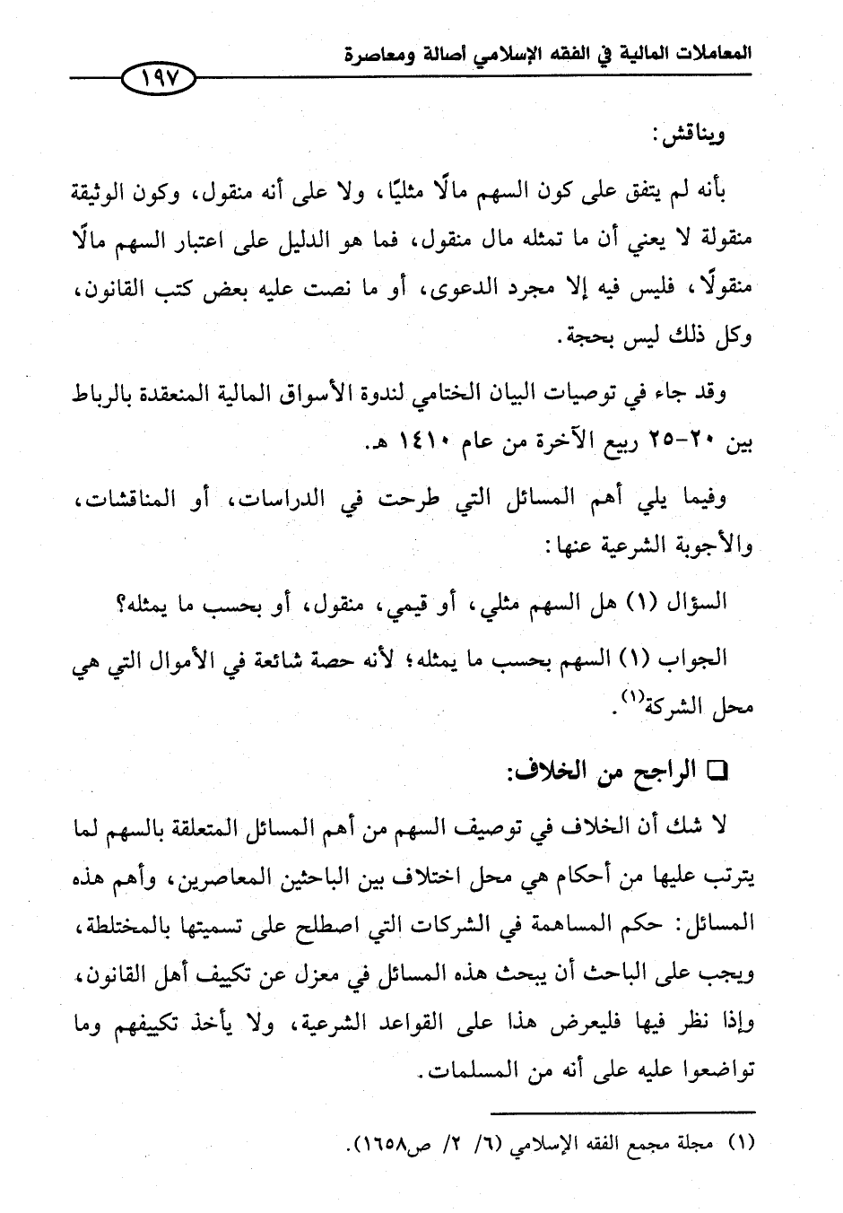 وقد جاء في توصيات البيان الختامي لندوة الأسواق المالية المنعقدة بالرباط بين ٢٠ - ٢٥ ربيع الآخرة من عام ١٤١٠ هـ.