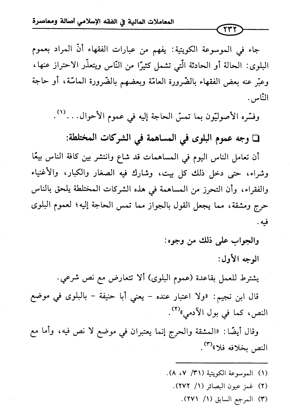 وجه عموم البلوى في المساهمة في الشركات المختلطة: