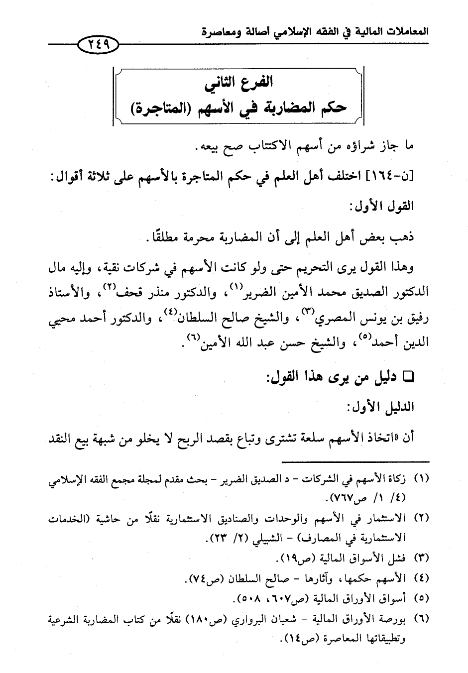 (¬٦) بورصة الأوراق المالية - شعبان البرواري (ص ١٨٠) نقلًا من كتاب المضاربة الشرعية وتطبيقاتها المعاصرة (ص ١٤).