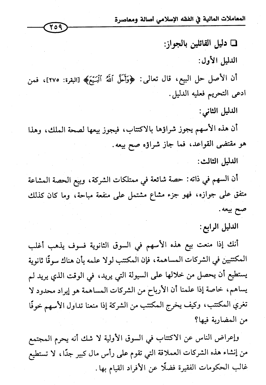 أنك إذا منعت بيع هذه الأسهم في السوق الثانوية فسوف يذهب أغلب المكتتبين في الشركات المساهمة، فإن المكتتب لولا علمه بأن هناك سوقا ثانوية يستطيع أن يحصل من خلالها على السيولة التي يريد، في الوقت الذي يريد لم يساهم، خاصة إذا علمنا أن الأرباح من الشركات المساهمة هو إيراد محدود لا تغري المكتتب، وكيف يخرج المكتتب من الشركة إذا منعنا تداول الأسهم خوفا من المضاربة فيها؟