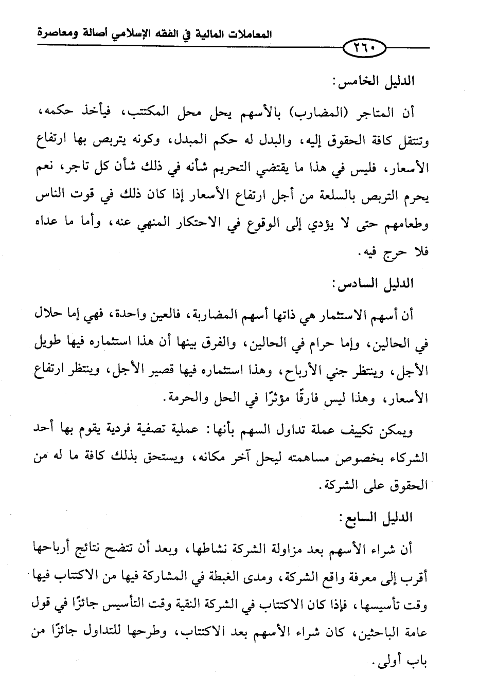أن شراء الأسهم بعد مزاولة الشركة نشاطها، وبعد أن تتضح نتائج أرباحها أقرب إلى معرفة واقع الشركة، ومدى الغبطة في المشاركة فيها من الاكتتاب فيها وقت تأسيسها، فإذا كان الاكتتاب في الشركة النقية وقت التأسيس جائزاً في قول عامة الباحثين، كان شراء الأسهم بعد الاكتتاب، وطرحها للتداول جائزا من باب أولى.