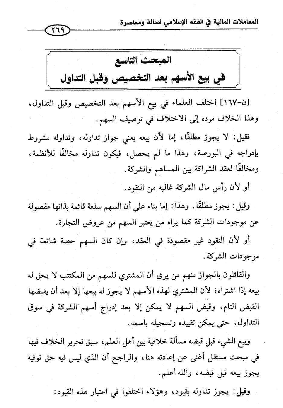 المبحث التاسع في بيع الأسهم بعد التخصيص وقبل التداول