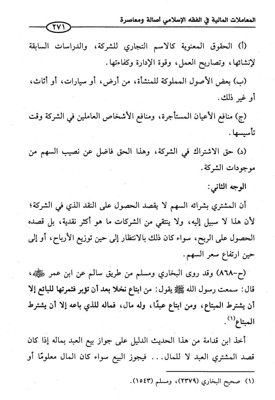 أن المشتري بشرائه السهم لا يقصد الحصول على النقد الذي في الشركة؛ لأن هذا لا سبيل إليه، ولا ينتقي من الشركات ما هو أكثر نقدية، بل قصده الحصول على الربح، سواء كان ذلك بالانتظار إلى حين توزيع الأرباح، أو إلى حين ارتفاع سعر السهم.