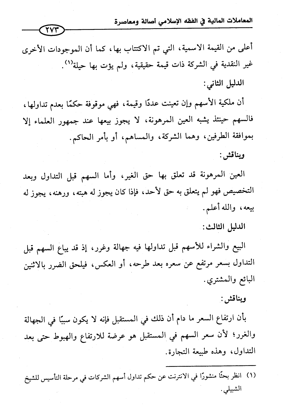 (¬١) انظر بحثًا منشورًا في الانترنت عن حكم تداول أسهم الشركات في مرحلة التأسيس للشيخ الشبيلي.