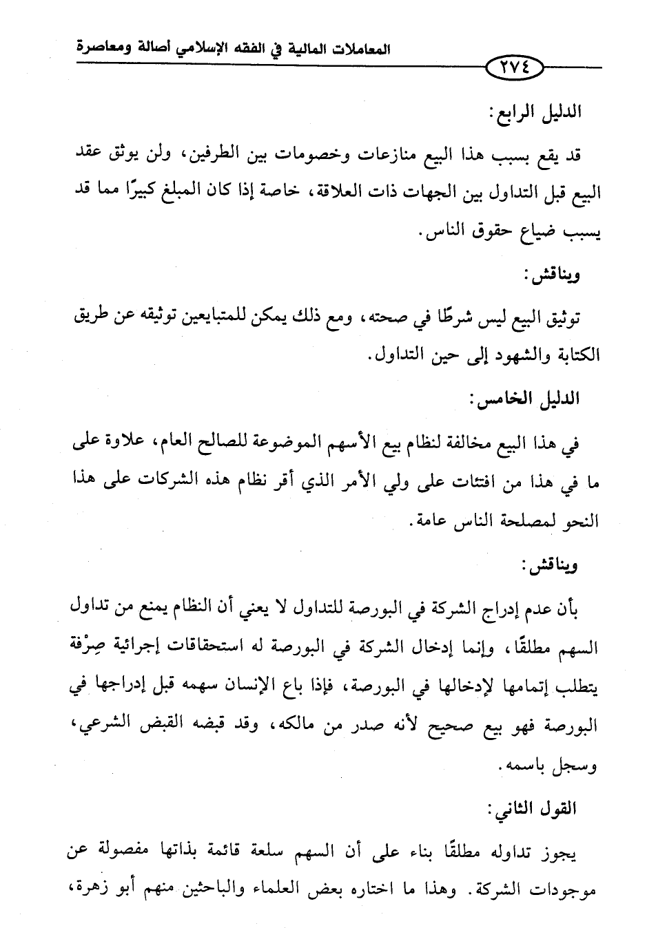 بأن عدم إدراج الشركة في البورصة للتداول لا يعني أن النظام يمنع من تداول السهم مطلقاً، وإنما إدخال الشركة في البورصة له استحقاقات إجرائية صِرْفة يتطلب إتمامها لإدخالها في البورصة، فإذا باع الإنسان سهمه قبل إدراجها في البورصة فهو بيع صحيح لأنه صدر من مالكه، وقد قبضه القبض الشرعي، وسجل باسمه.