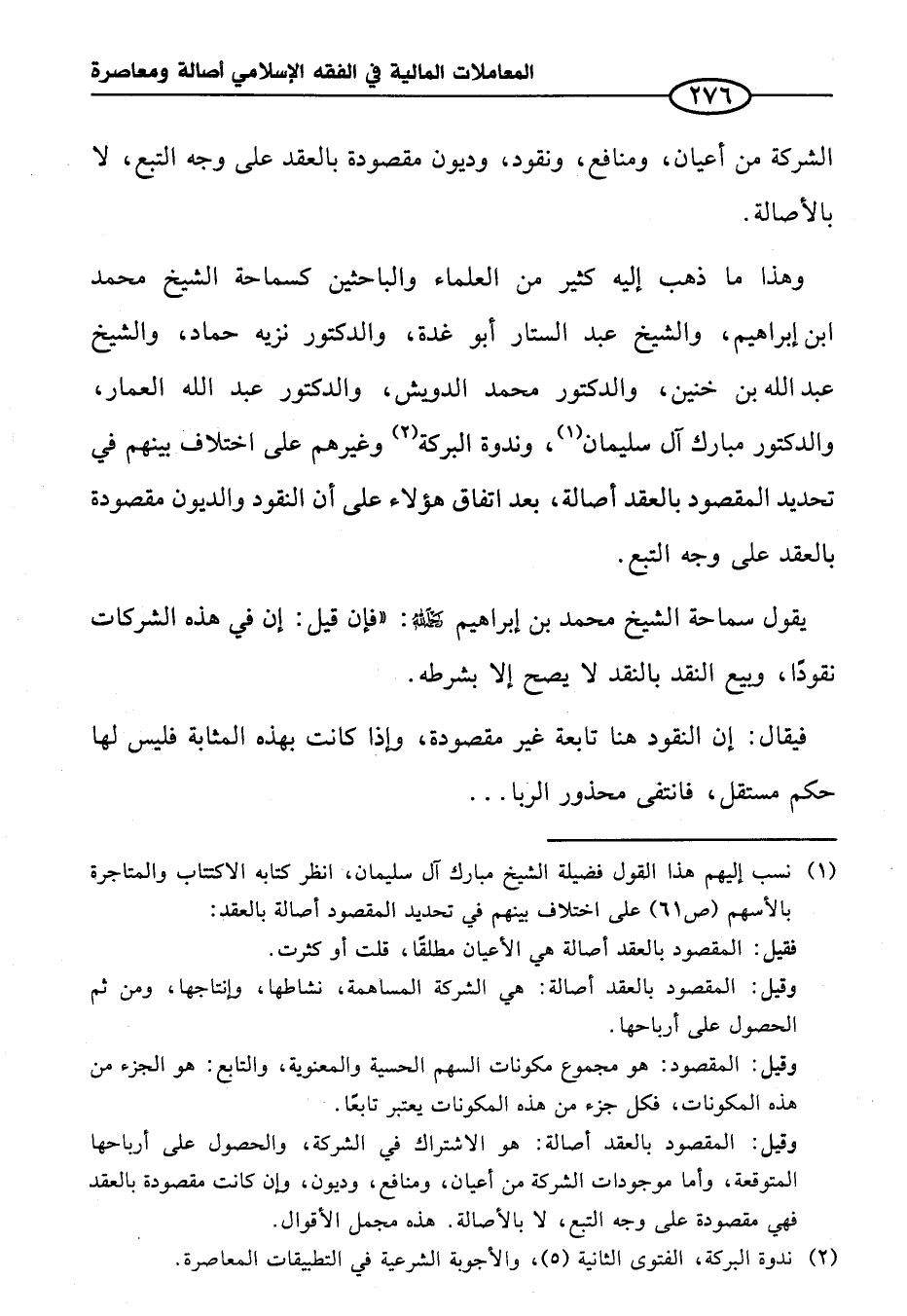 (¬١) نسب إليهم هذا القول فضيلة الشيخ مبارك آل سليمان، انظر كتابه الاكتتاب والمتاجرة بالأسهم (ص ٦١) على اختلاف بينهم في تحديد المقصود أصالة بالعقد: