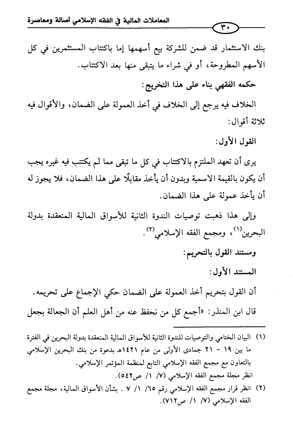 (¬٢) انظر قرار مجمع الفقه الإِسلامي رقم ٦٥/ ١/ ٧. بشأن الأسواق المالية، مجلة مجمع الفقه الإِسلامي (٧/ ١/ ص ٧١٢).