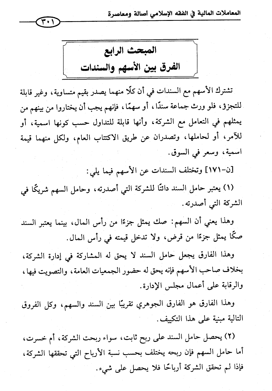 (١) يعتبر حامل السند دائنا للشركة التي أصدرته، وحامل السهم شريكا في الشركة التي أصدرته.