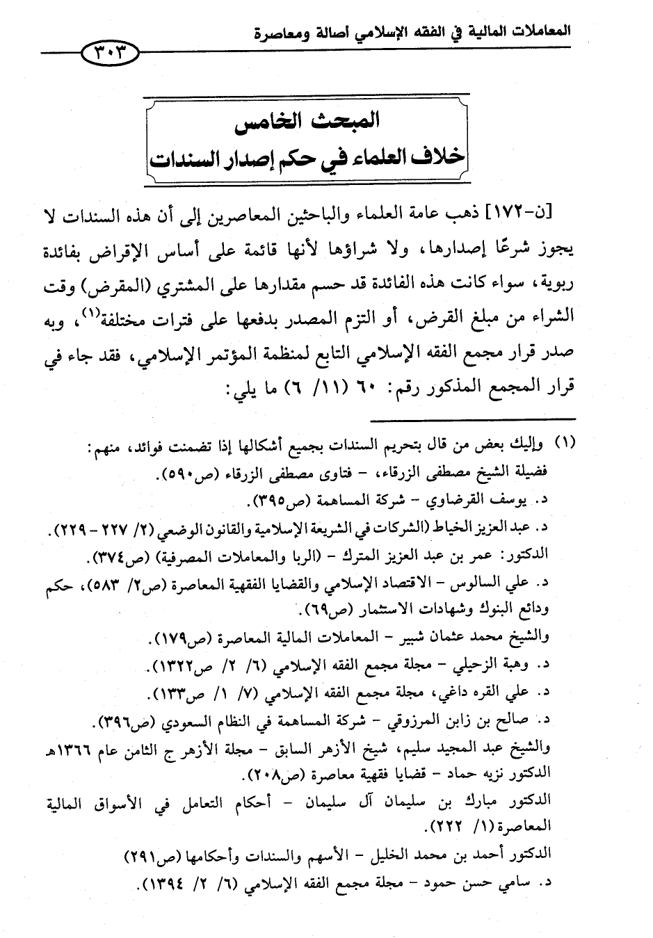 المبحث الخامس خلاف الكلماء في حكم إصدار السندات