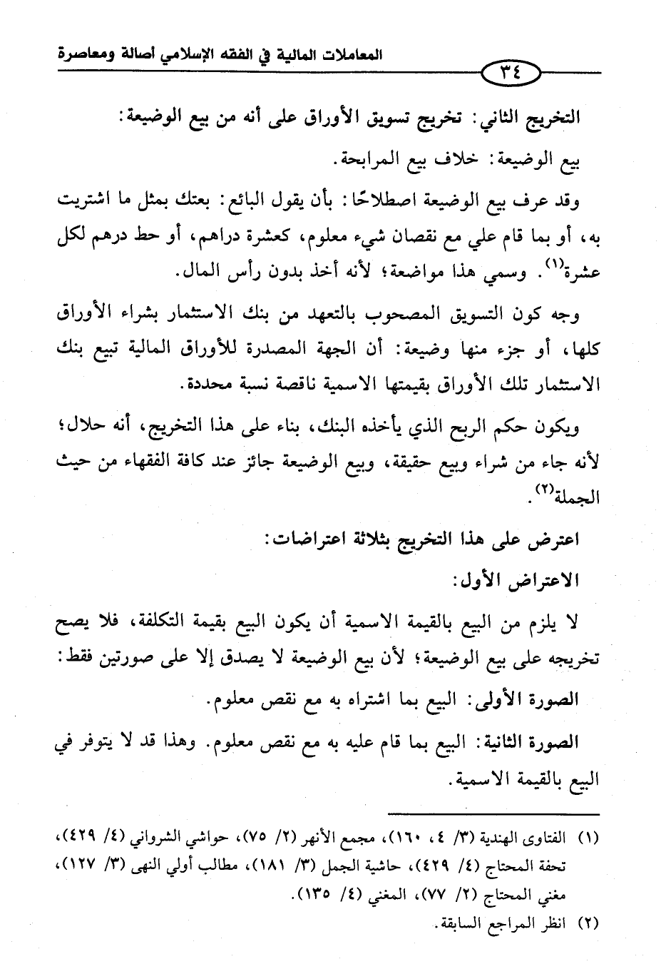 ويكون حكم الربح الذي يأخذه البنك، بناء على هذا التخريج، أنه حلال؛ لأنه جاء من شراء وبيع حقيقة، وبيع الوضيعة جائز عند كافة الفقهاء من حيث الجملة (¬٢).