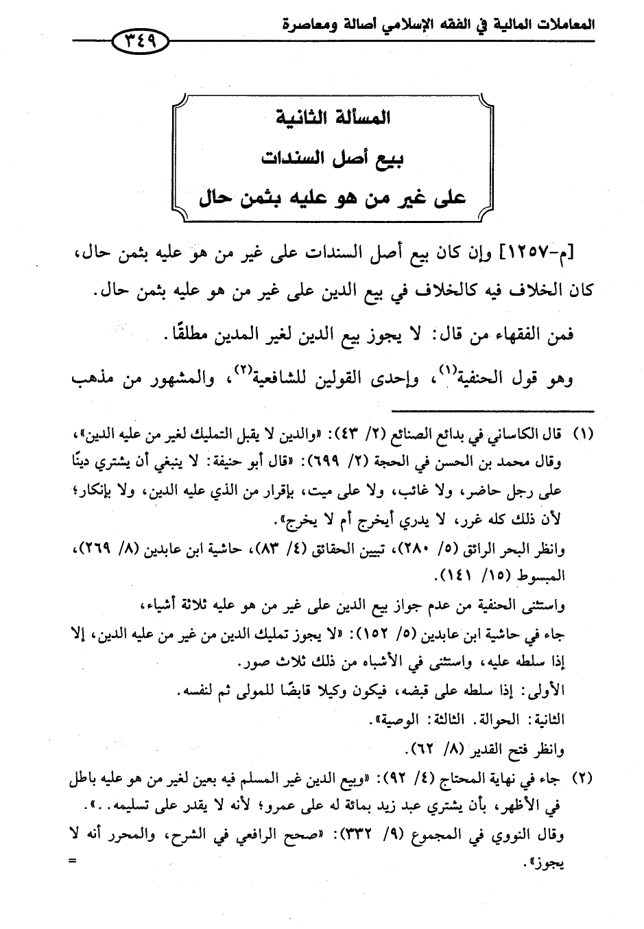 [م - ١٢٥٧] وإن كان بيع أصل السندات على غير من هو عليه بثمن حال، كان الخلاف فيه كالخلاف في بيع الدين على غير من هو عليه بثمن حال.