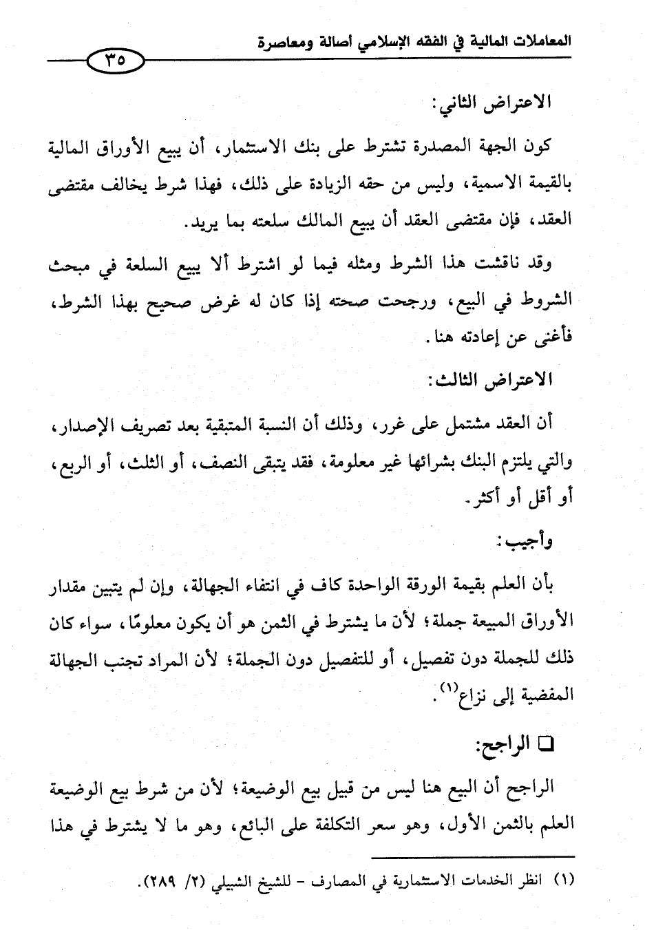 (¬١) انظر الخدمات الاستثمارية في المصارف - للشيخ الشبيلي (٢/ ٢٨٩).