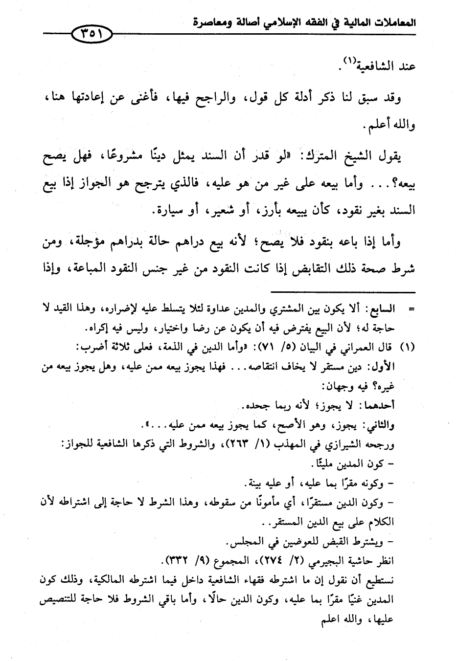 - وكون الدين مستقرا، أي مأمونا من سقوطه، وهذا الشرط لا حاجة إلى اشتراطه لأن الكلام على بيع الدين المستقر ..