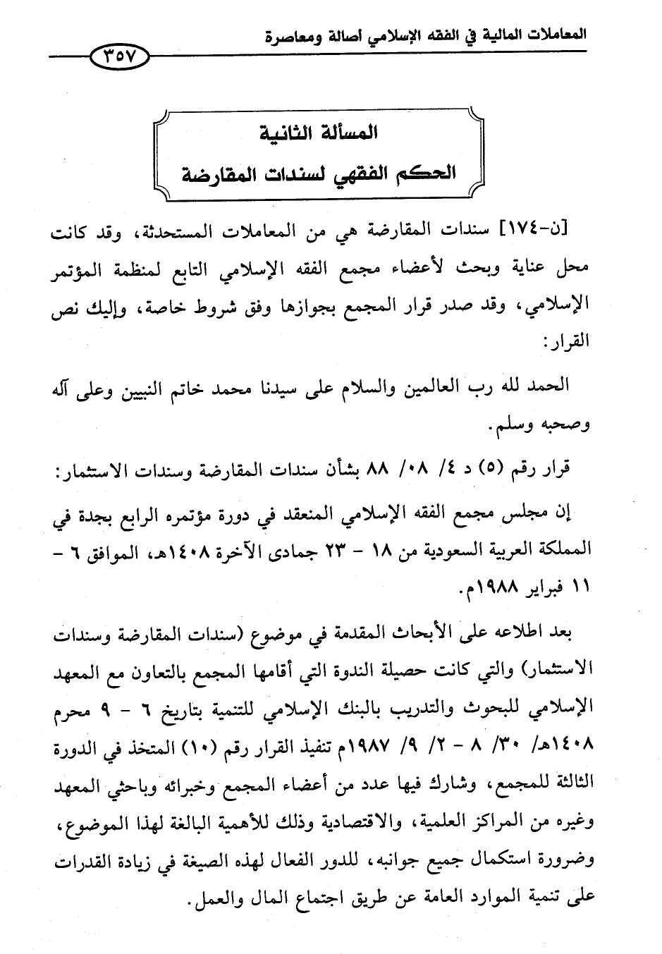 المسألة الثانية الحكم الفقهي لسندات المقارضة