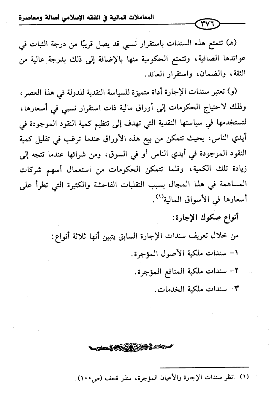 (¬١) انظر سندات الإجارة والأعيان المؤجرة، منذر قحف (ص ١٠٠).
