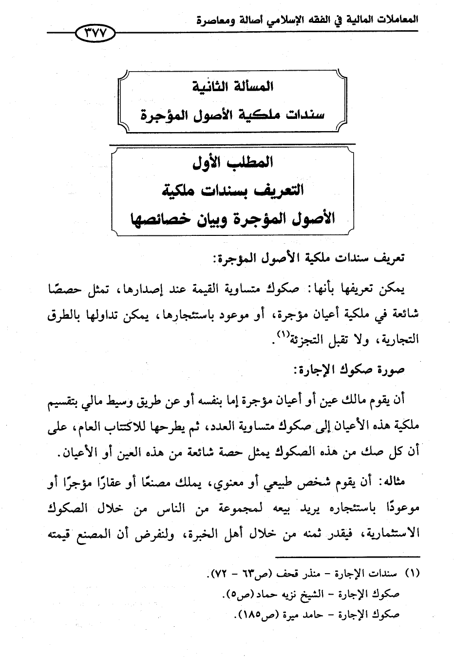 صكوك الإجارة - الشيخ نزيه حماد (ص ٥).