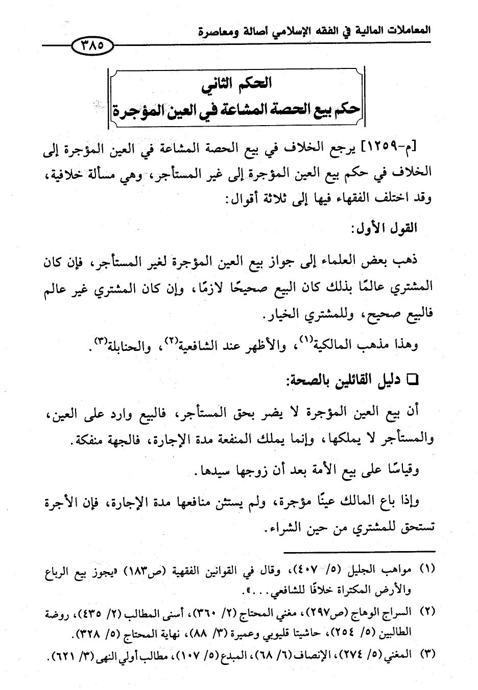 الحكم الثاني حكم بيع الحصة المشاعة في العين المؤجرة