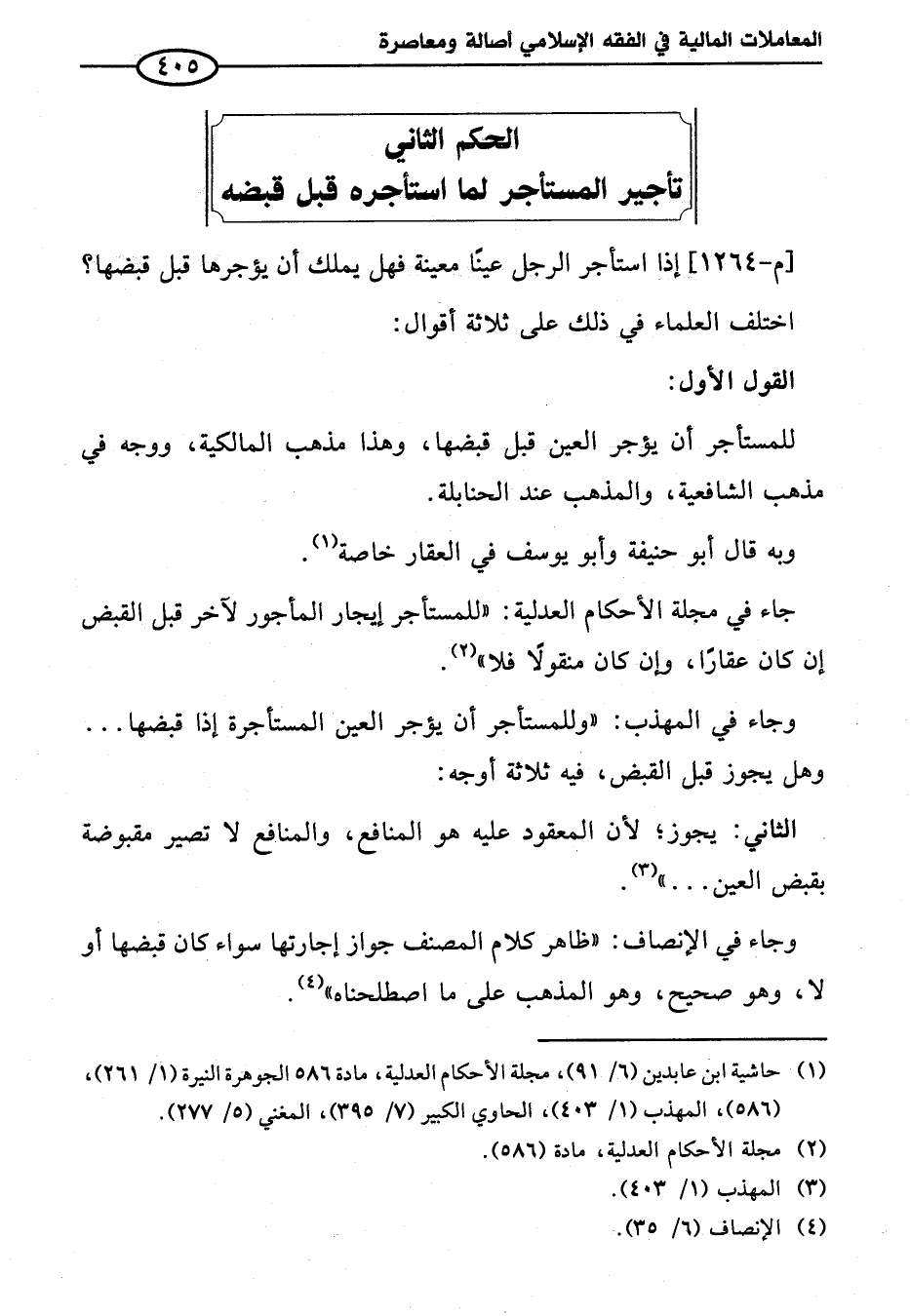 الحكم الثاني تأجير المستأجر لما استأجره قبل قبضه