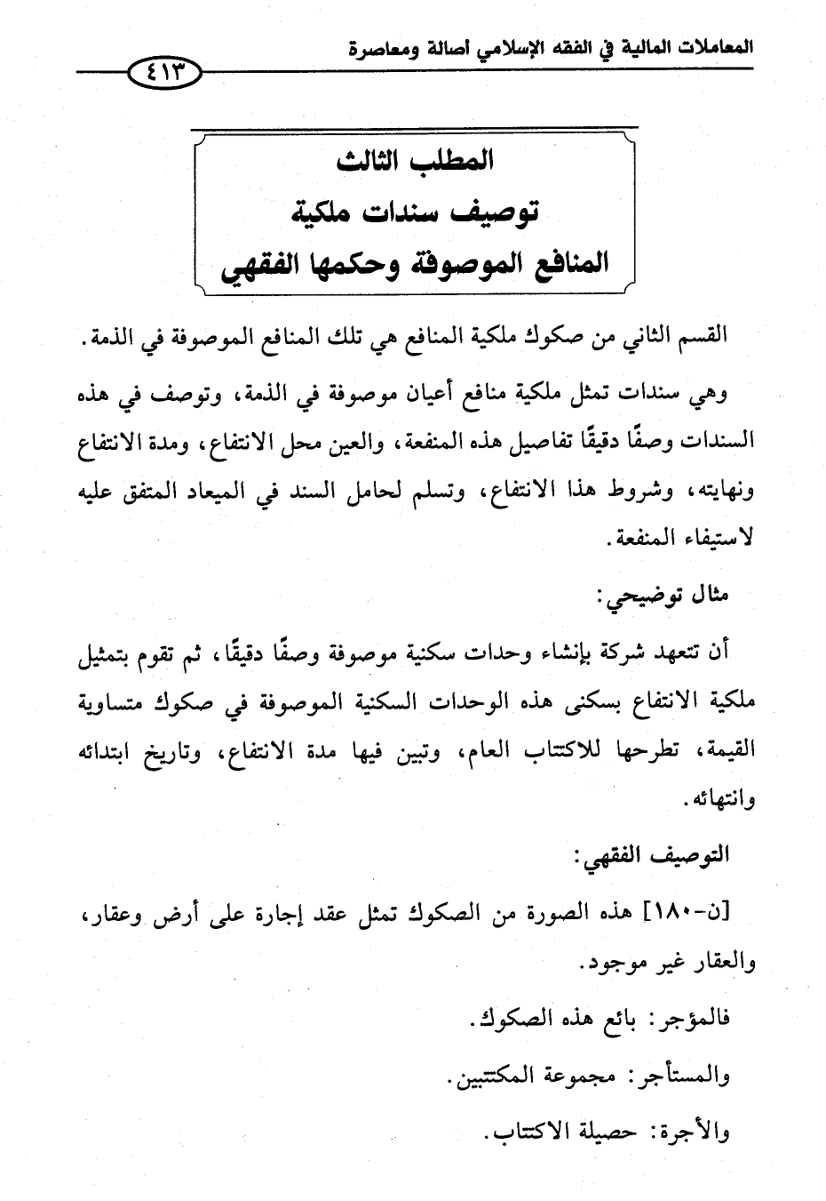 المطلب الثالث توصيف سندات ملكية المنافع الموصوفة وحكمها الفقهي