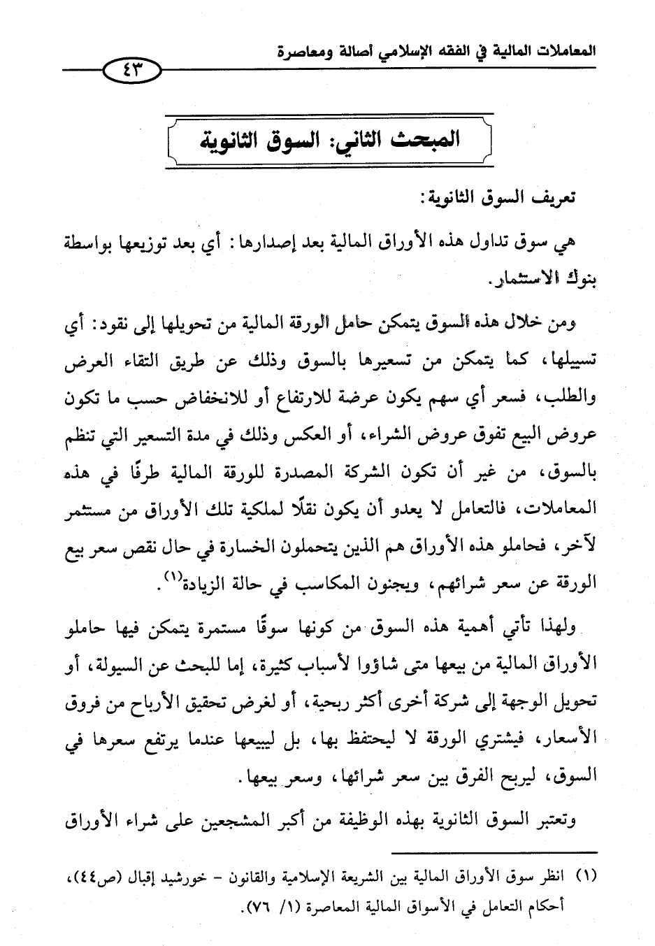 (¬١) انظر سوق الأوراق المالية بين الشريعة الإِسلامية والقانون - خورشيد إقبال (ص ٤٤)، أحكام التعامل في الأسواق المالية المعاصرة (١/ ٧٦).