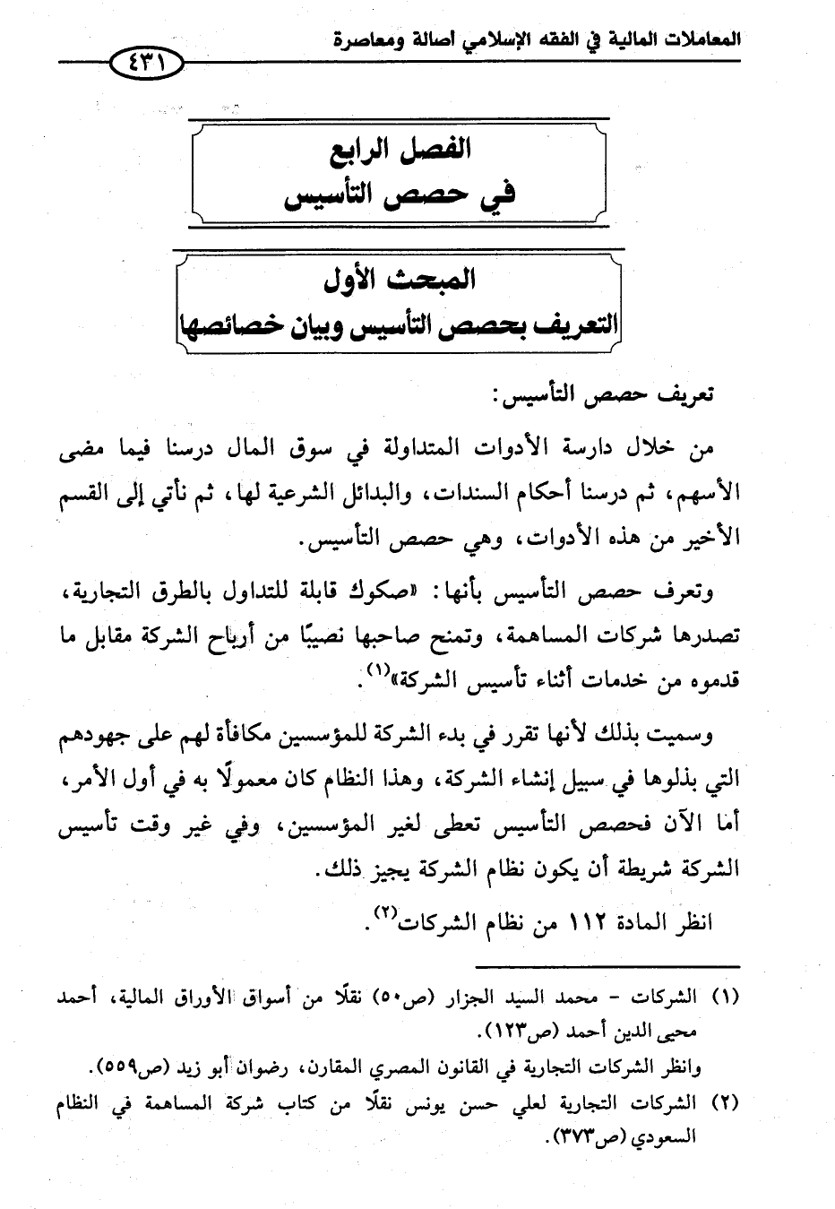 المبحث الأول التعريف بحصص التأسيس وبيان خصائصها