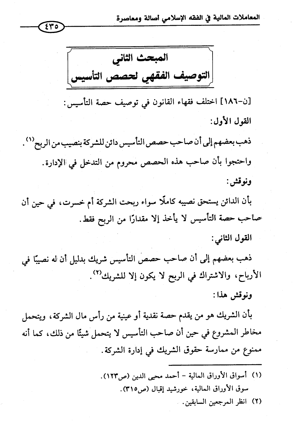 المبحث الثاني التوصيف الفقهي لحصص التأسيس