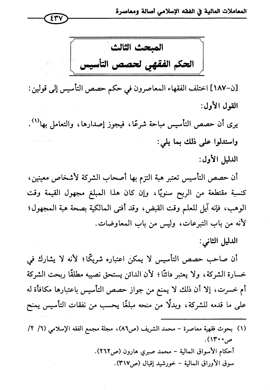 المبحث الثالث الحكم الفقهي لحصص التأسيس